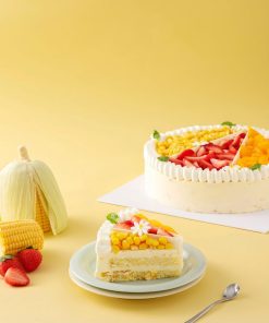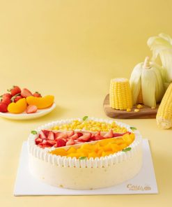 Phần trang trí: Dâu tây, Bắp nguyên hạt, Sô-cô-la trắng, Đào Kem truyền thống