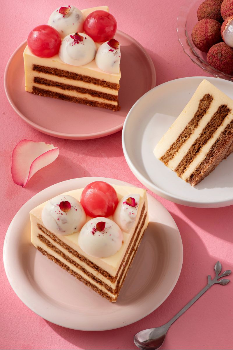 Đặc biệt, điểm nhấn nằm ở lớp mứt vải hoa hồng mang lại hậu vị nhẹ nhàng, thơm thoang thoảng đầy cuốn hút.